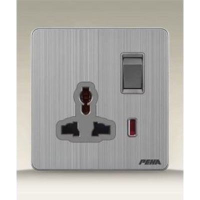 Bộ ổ cắm đa năng 3 chấu + Công tắc khóa peha – A300 Aluminum là dòng sản phẩm cao cấp được sản xuất và dùng vật liệu nhôm xước màu xám, hiện đại và sang trọng, rất phù hợp với ngôi nhà mang phong cách hiện đại.