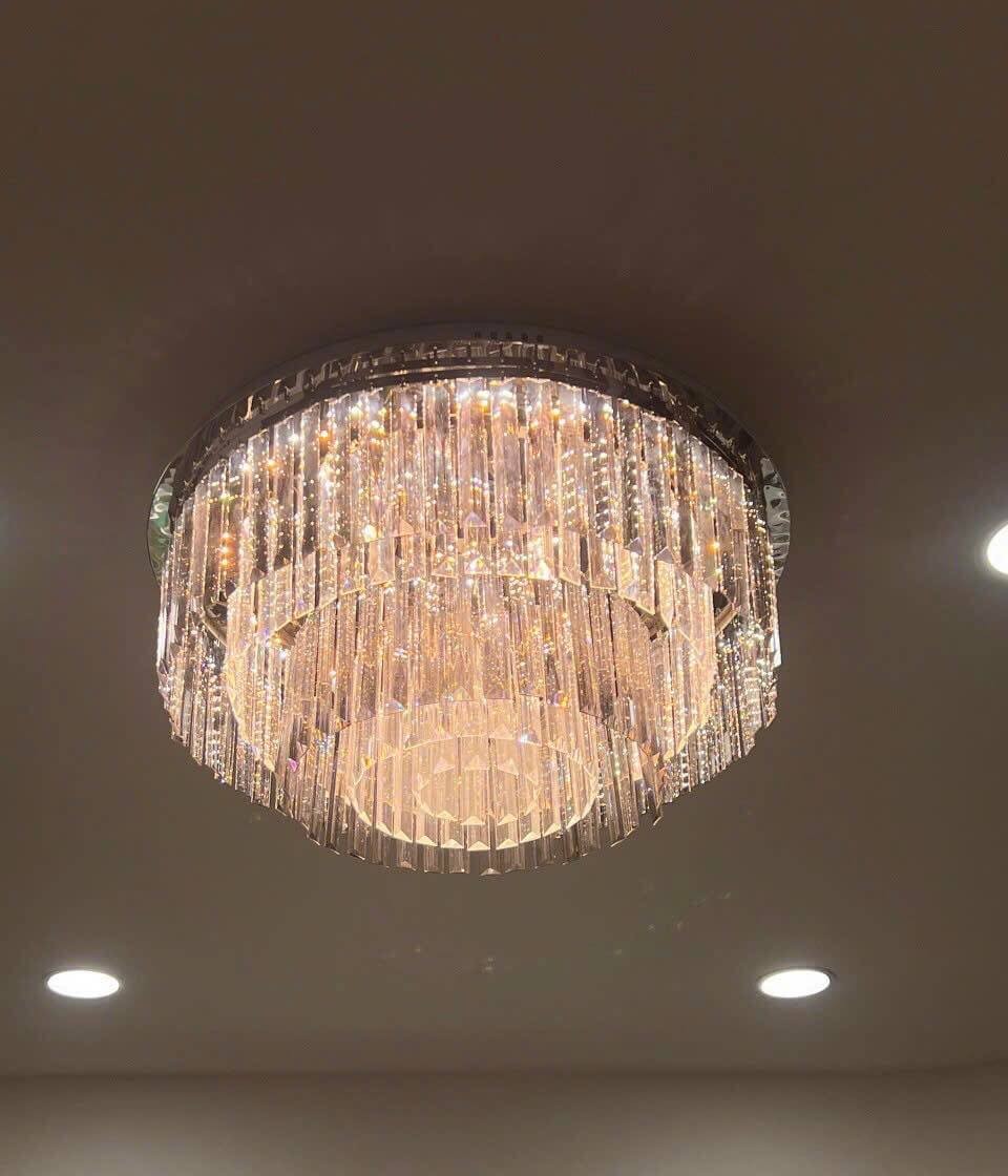 Đèn ốp pha lê là một loại đèn trang trí được gắn sát lên trần nhà hoặc tường, mang đến vẻ đẹp sang trọng và tinh tế nhờ vào các chi tiết pha lê lấp lánh. Đây là lựa chọn lý tưởng cho những không gian cần sự lung linh nhưng lại hạn chế về chiều cao trần hoặc diện tích.
