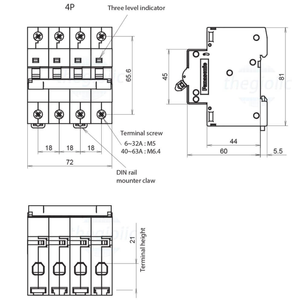 Cầu dao 4 pha 63A của Panasonic là một thiết bị điện dùng để bảo vệ và kiểm soát mạch điện một pha với dòng điện định mức là 63 ampe.